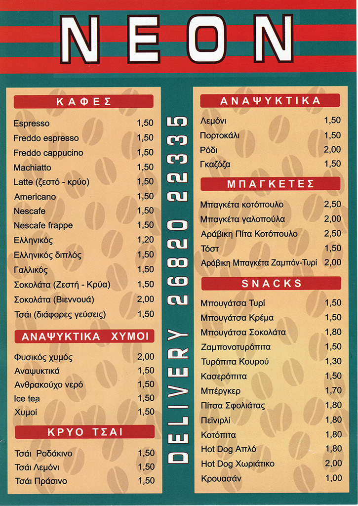 Neon Μπουγάτσα Cafe Menu